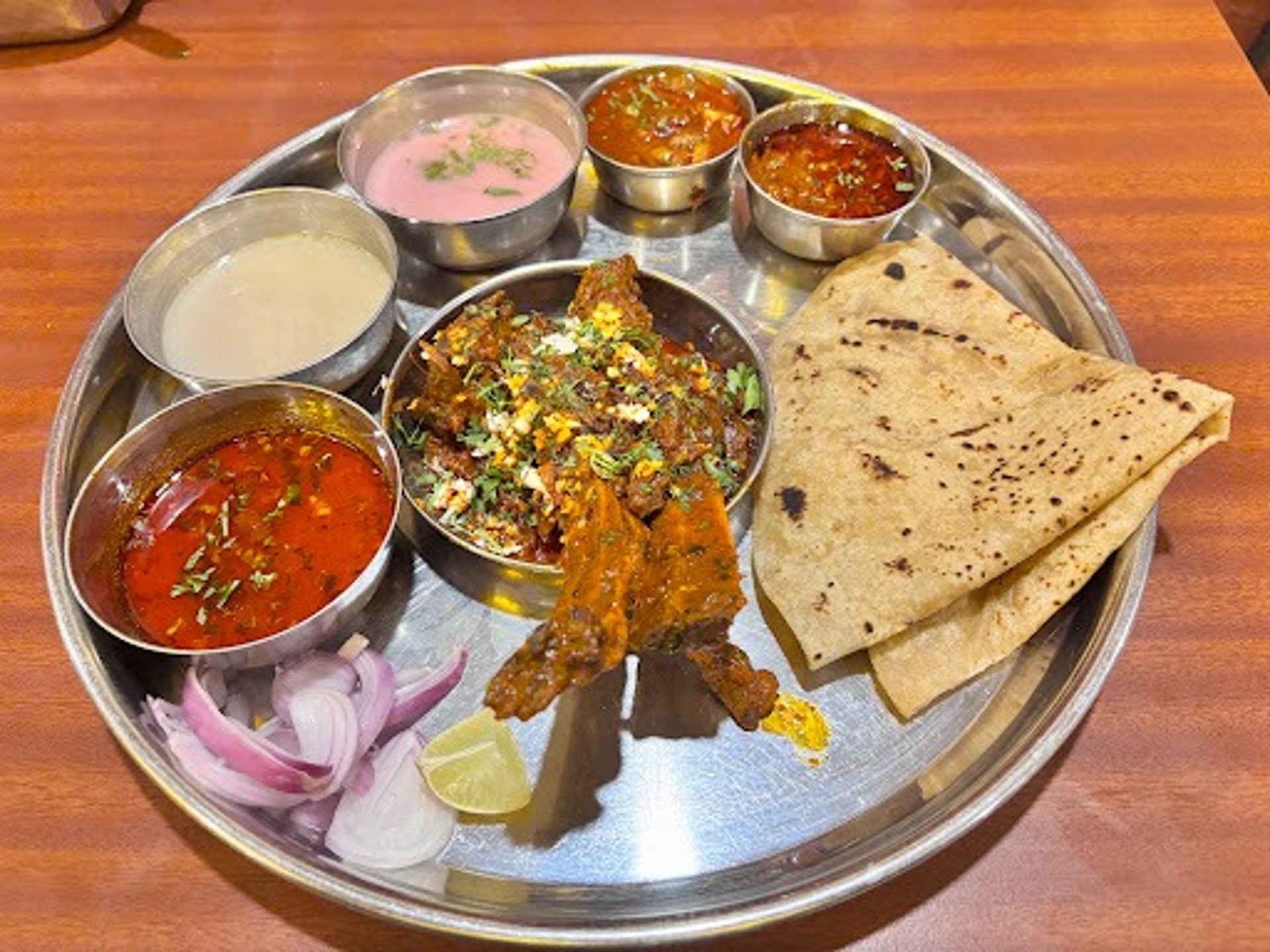 Taste was good. service was excellent atmosphere was nicely decorated. we ordered Mutton chap which not cooked welly. for thali solkadhi,tambda,pandhara rassa, rice was unlimited. Moderate spicy with decent masalas.